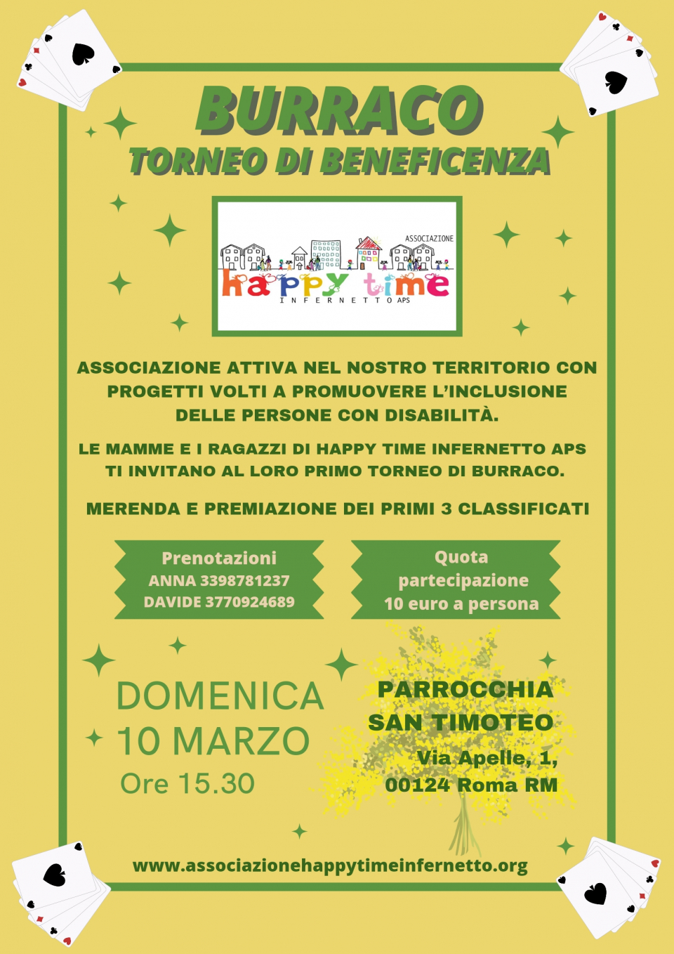 HAPPY TIME INFERNETTO APS COGLIE L'OCCASIONE PER RINGRAZIARE LA PARROCCHIA DI SAN TIMOTEO PER L'OSPITALITA' E GLI ORGANIZZATORI, ANNA E DAVIDE, PER L'IMPECCABILE SVOLGIMENTO DEL TORNEO E PER AVER COINVOLTO COSI' TANTE PERSONE.