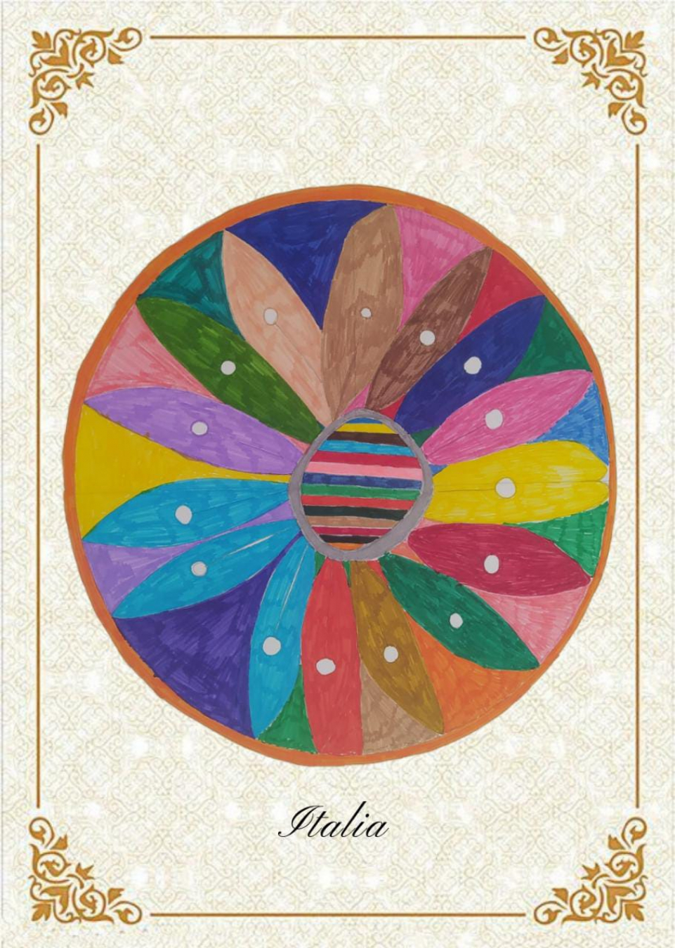 Ecco i mandala realizzati durante il nostro laboratorio di arteterapia e selezionati per la 1° MOSTRA VIRTUALE INTERNAZIONALE DEI MANDALA DELLA PACE 2021 "Amicizia tra le Nazioni". L'evento, promosso da Living Peace International, rimarrà aperto per tutto il 2021 affinché chiunque lo desideri possa unirsi e testimoniare insieme la pace e la cultura del proprio paese. L' Associazione Happy Time Infernetto onlus ha aderito alla mostra con tre mandala nelle seguenti categorie: - prima categoria 6-12 anni "Amore Olimpico" - seconda categoria 13-25 anni "Un fiore per la pace" - Terza categoria dai 26 anni "Insieme, uniti nella speranza di pace sosteniamo il mondo"