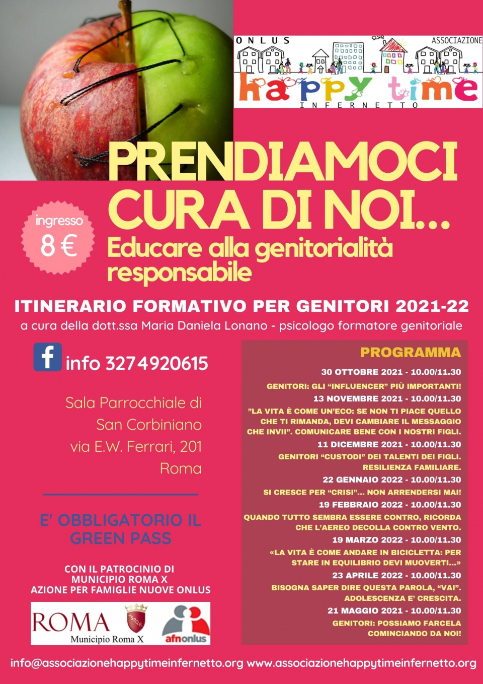 L'itinerario, a cura della dott.ssa Maria Daniela Lonano, psicologo, formatore genitoriale, è giunto oggi alla decima edizione. E' composto da vari incontri, uno al mese, della durata di un'ora e mezza ciascuno privilegiando l'interattività tra i partecipanti.